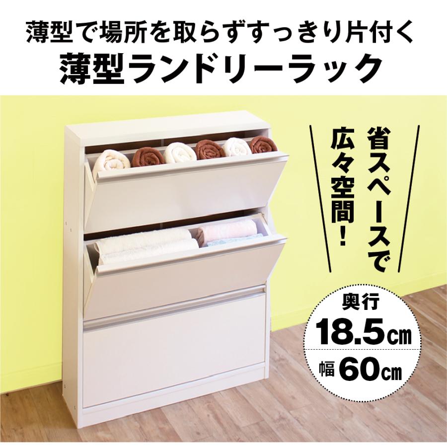 ランドリー ラック 収納 棚 サニタリー おしゃれ スリム フラップ 扉 狭い 3段 タオル 洗面所 すき間 隙間収納 薄型 幅60 奥行 ロータイプ 収納家具 本棚 Lrf 60 L Mihamaの家具 通販 Yahoo ショッピング